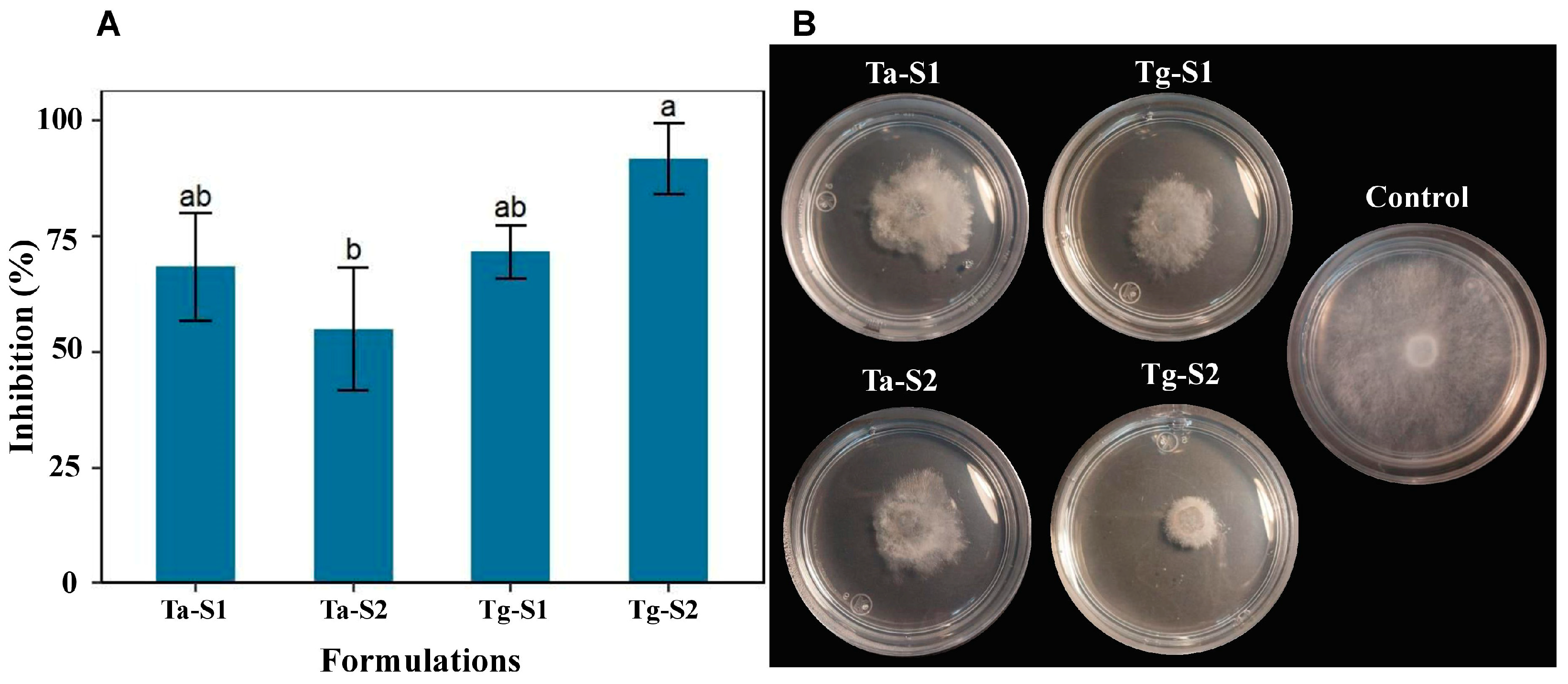 2.6. Antifungal Properties of Trichoderma Supernatants Against B. cinerea Isolated from the Field