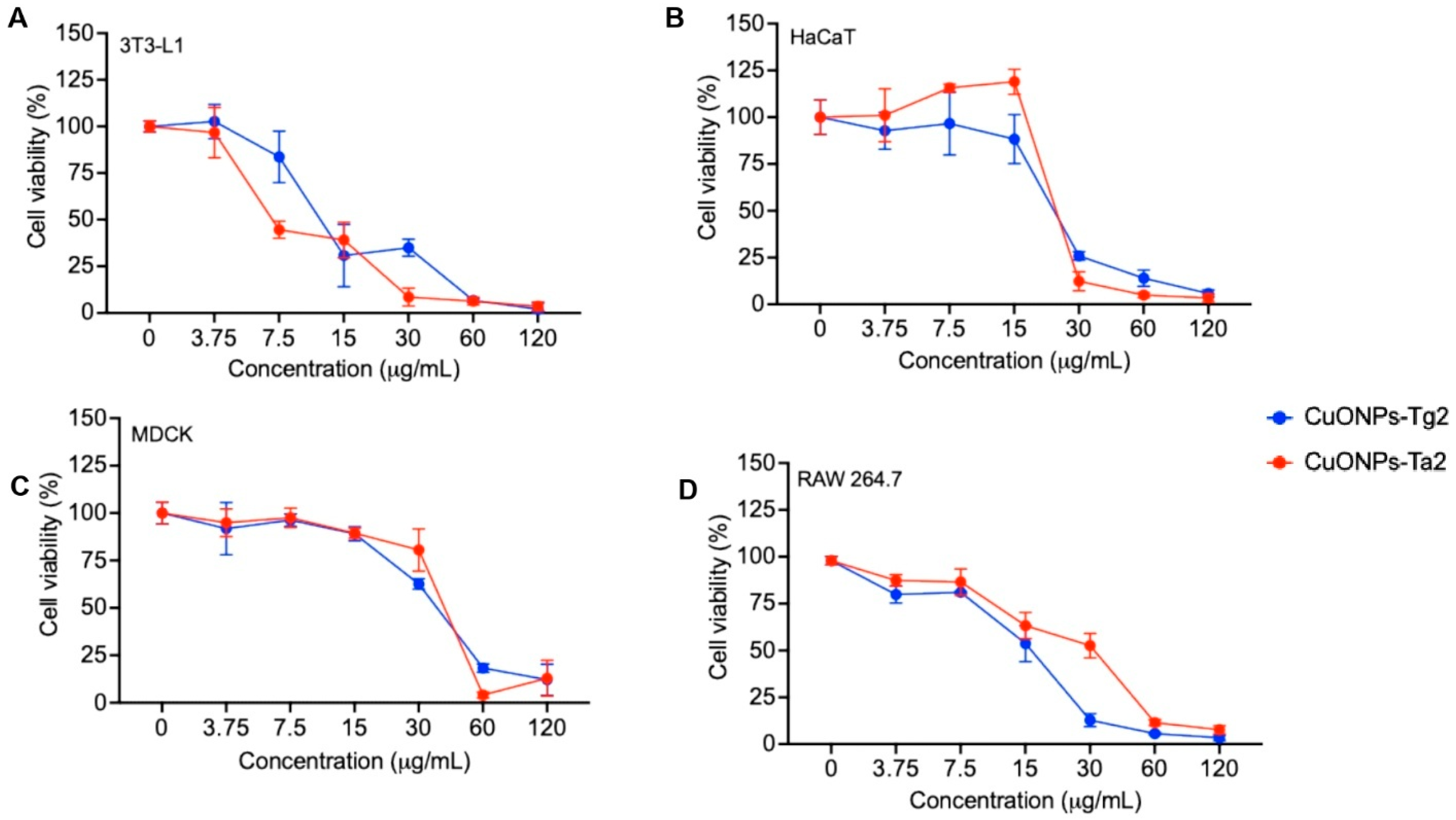 | CuONPs-Tg2 | 14.05 ± 0.881 R2: 0.880 | 10.74 ± 0.936 R2: 0.936 | 7.849 ± 0.955 R2: 0.955 | 8.103 ± 0.948 R2: 0.948 |