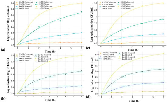 4.4. Time–Kill Kinetics and Post-Antibiotic Effect
