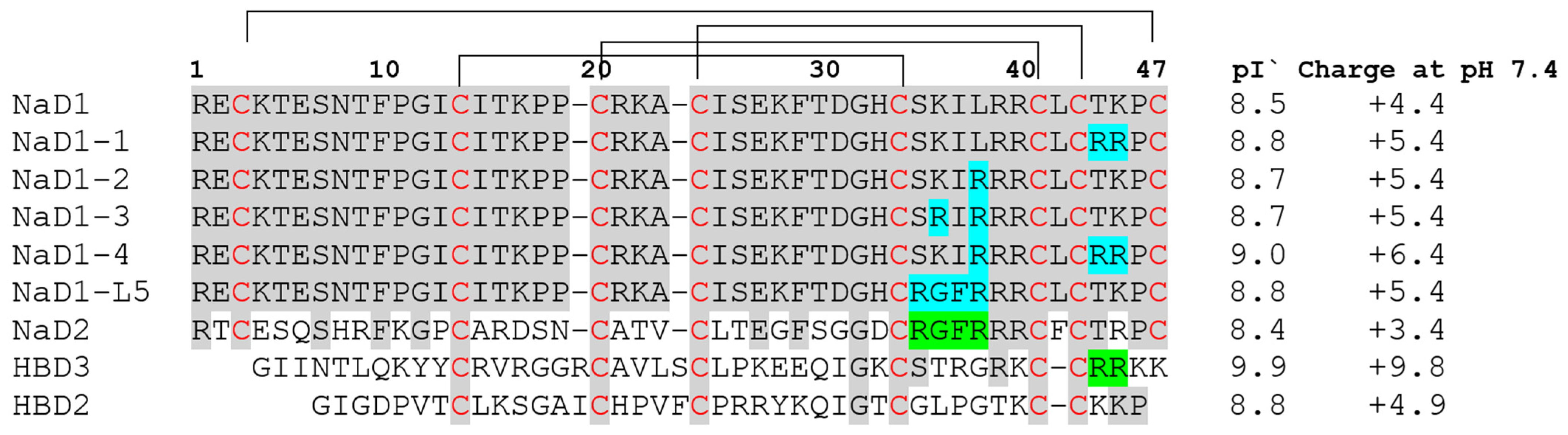 2.1. Structural Characterization of Modified Analogues of NaD1