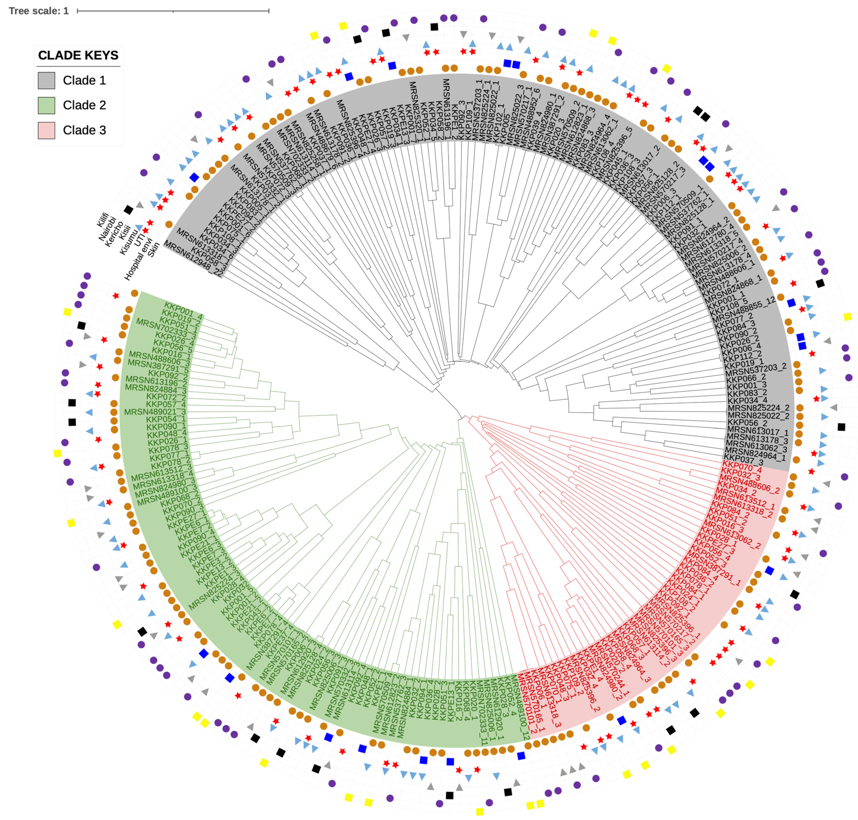- Henson, S.P.; Boinett, C.J.; Ellington, M.J.; Kagia, N.; Mwarumba, S.; Nyongesa, S.; Mturi, N.; Kariuki, S.; Scott, J.A.G.; Thomson, N.R.; et al. Molecular epidemiology of Klebsiella pneumoniae invasive infections over a decade at Kilifi County Hospital in Kenya. Int. J. Med. Microbiol. 2017, 307, 422–429. [Google Scholar] [CrossRef]