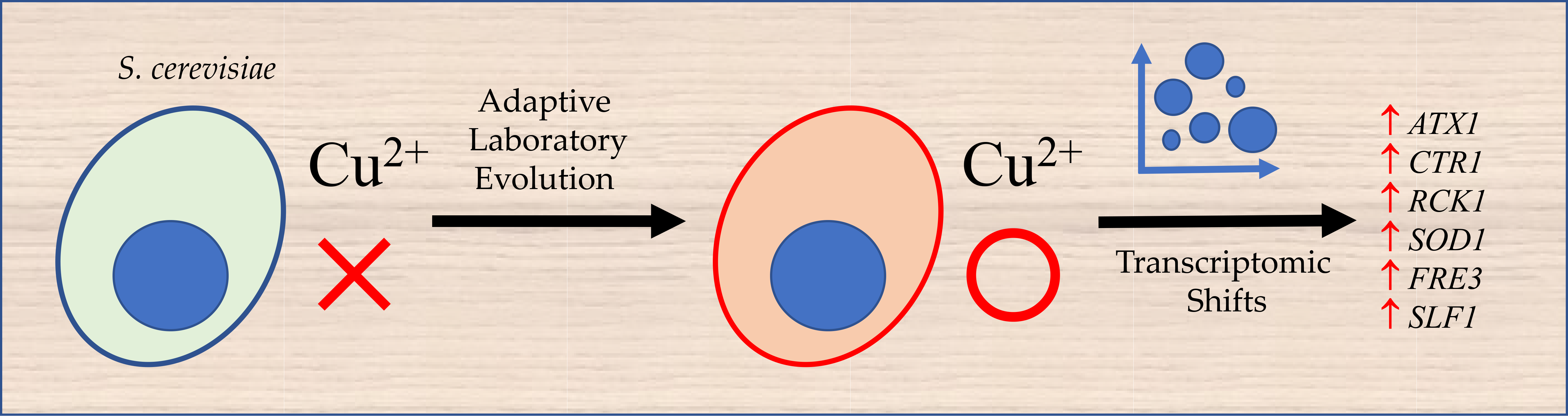 In the present study, we employed ALE to develop copper-resistant mutants of S. cerevisiae through serial passaging in copper-supplemented media. Transcriptomic profiling using microarray analysis was conducted to identify differentially expressed genes (DEGs) associated with copper tolerance. The primary objectives of this study were to (1) identify key genes and pathways involved in copper resistance, (2) propose a mechanistic model based on changes in gene expression levels, and (3) produce molecular insights for the development of more durable copper-based wood preservatives.