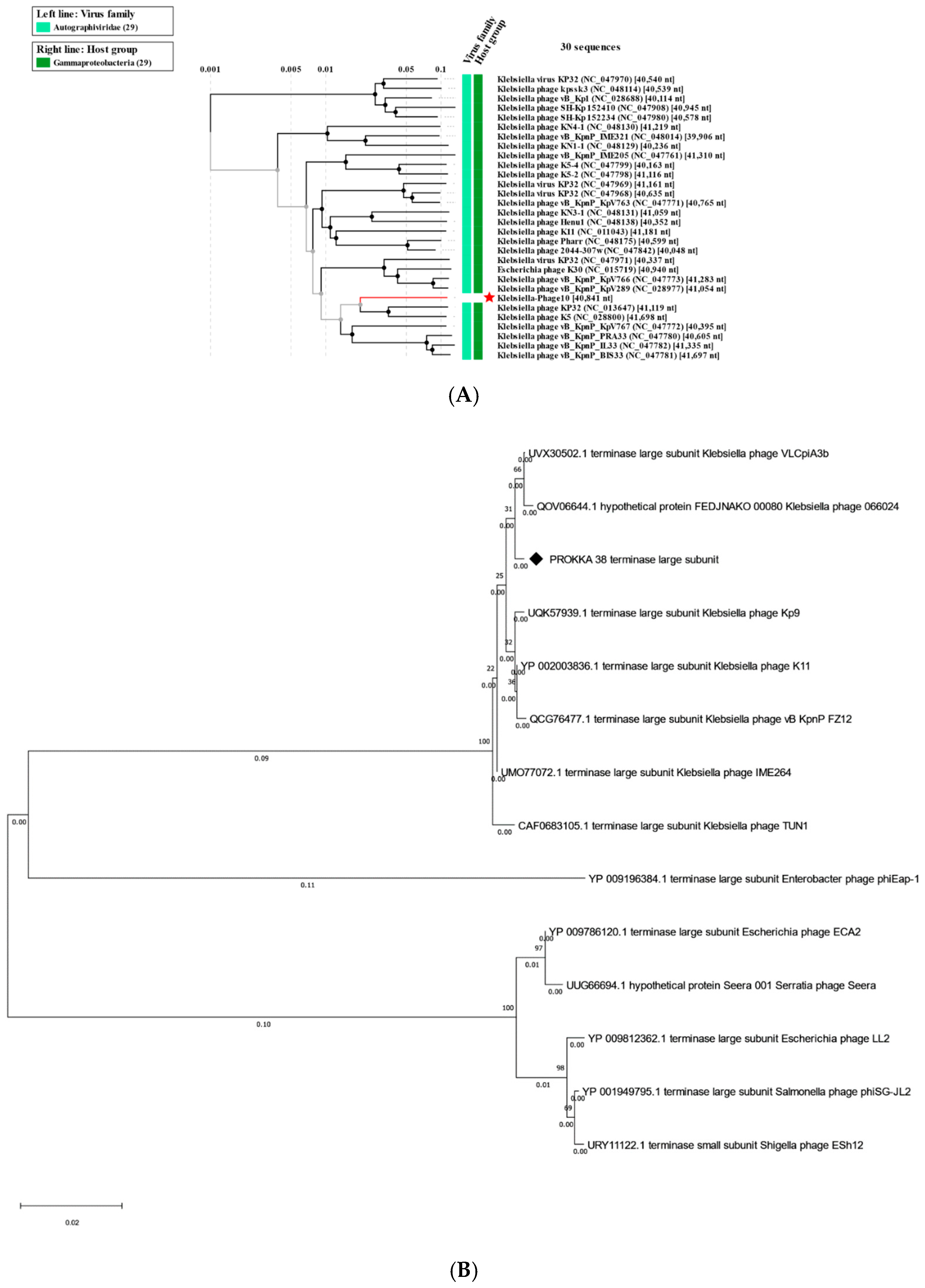 - Yang, L.; Wang, C.; Zeng, Y.; Song, Y.; Zhang, G.; Wei, D.; Li, Y.; Feng, J. Characterization of a novel phage against multidrug-resistant Klebsiella pneumoniae. Arch. Microbiol. 2024, 206, 379. [Google Scholar] [CrossRef] [PubMed]