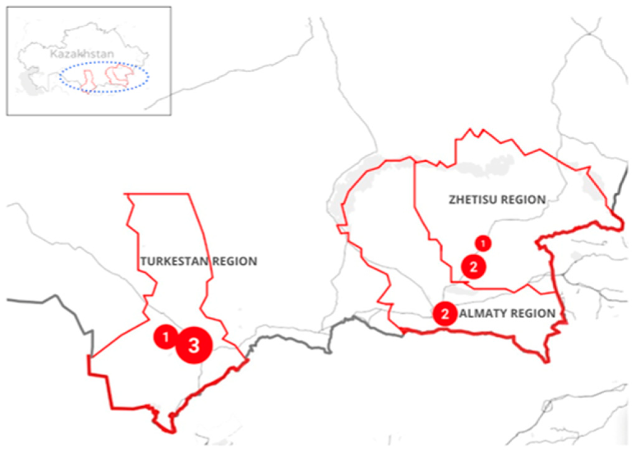 Yespembetov, B.; Kirkimbayeva, Z.; Abdykalyk, A.; Akhmetova, A.; Shevtsov, A.; Syrym, N.; Alpysbayeva, S.; Sarmykova, M.; Abdimukhtar, A.; Anarbekova, A.; et al. Detection and Preliminary Genomic Characterization of Poultry-Derived Salmonella enterica from Southern Kazakhstan. Antibiotics 2025, 14, 1195. https://doi.org/10.3390/antibiotics14121195