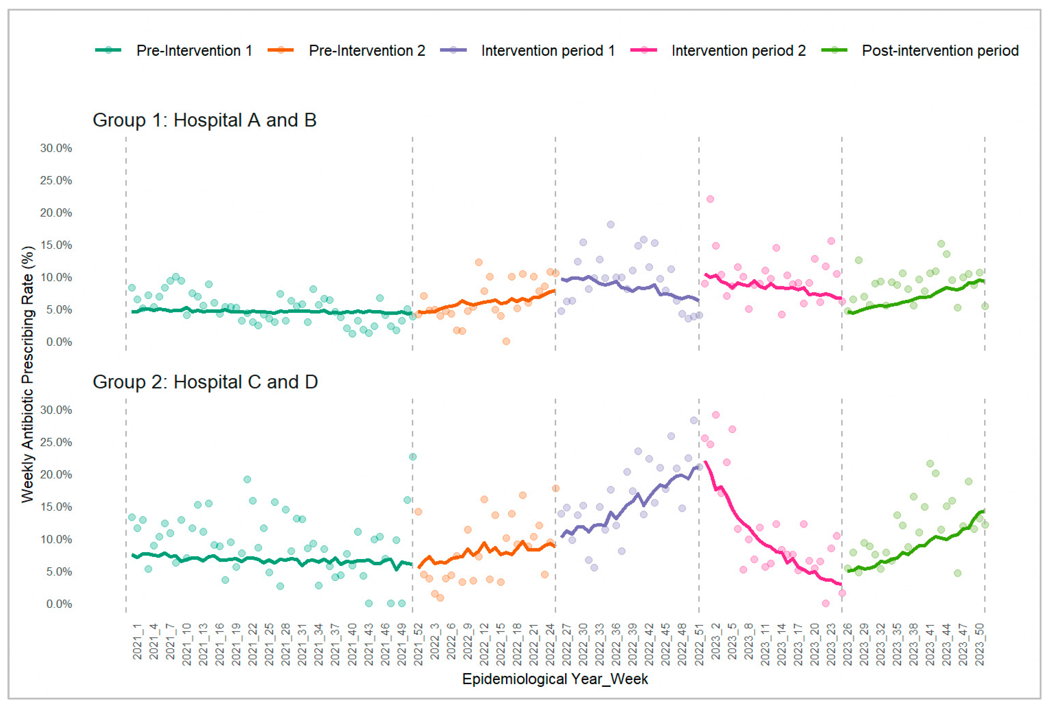 - Attal, H.; Huang, Z.; Kuan, W.S.; Weng, Y.; Tan, H.Y.; Seow, E.; Peng, L.L.; Lim, H.C.; Chow, A. N-of-1 Trials of Antimicrobial Stewardship Interventions to Optimize Antibiotic Prescribing for Upper Respiratory Tract Infection in Emergency Departments: Protocol for a Quasi-Experimental Study. JMIR Res. Protoc. 2024, 13, e50417. [Google Scholar] [CrossRef]