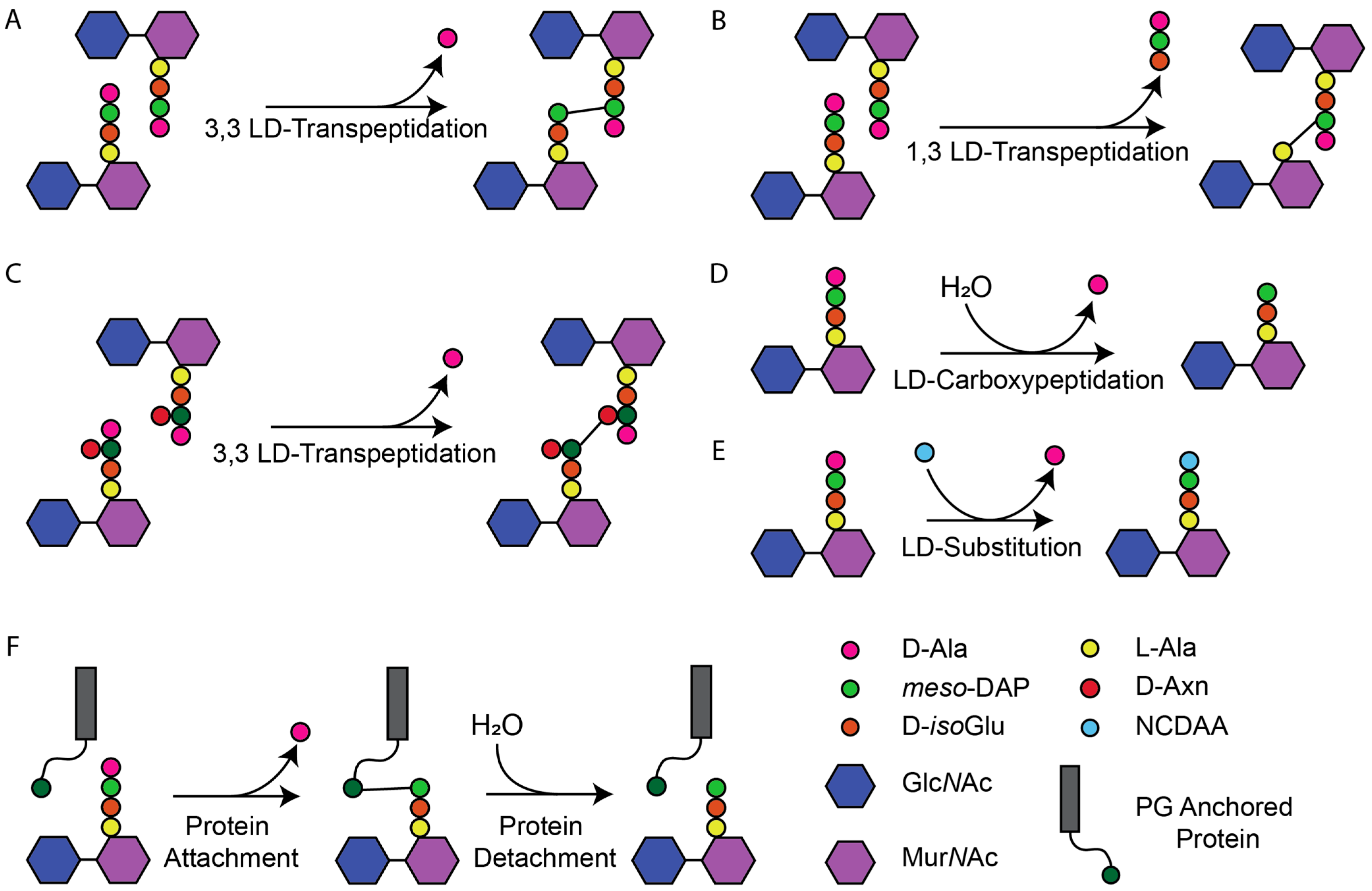 | 3,3-LD-TPase | meso-DAP-meso-DAP | LdtD | E. coli | [28] |