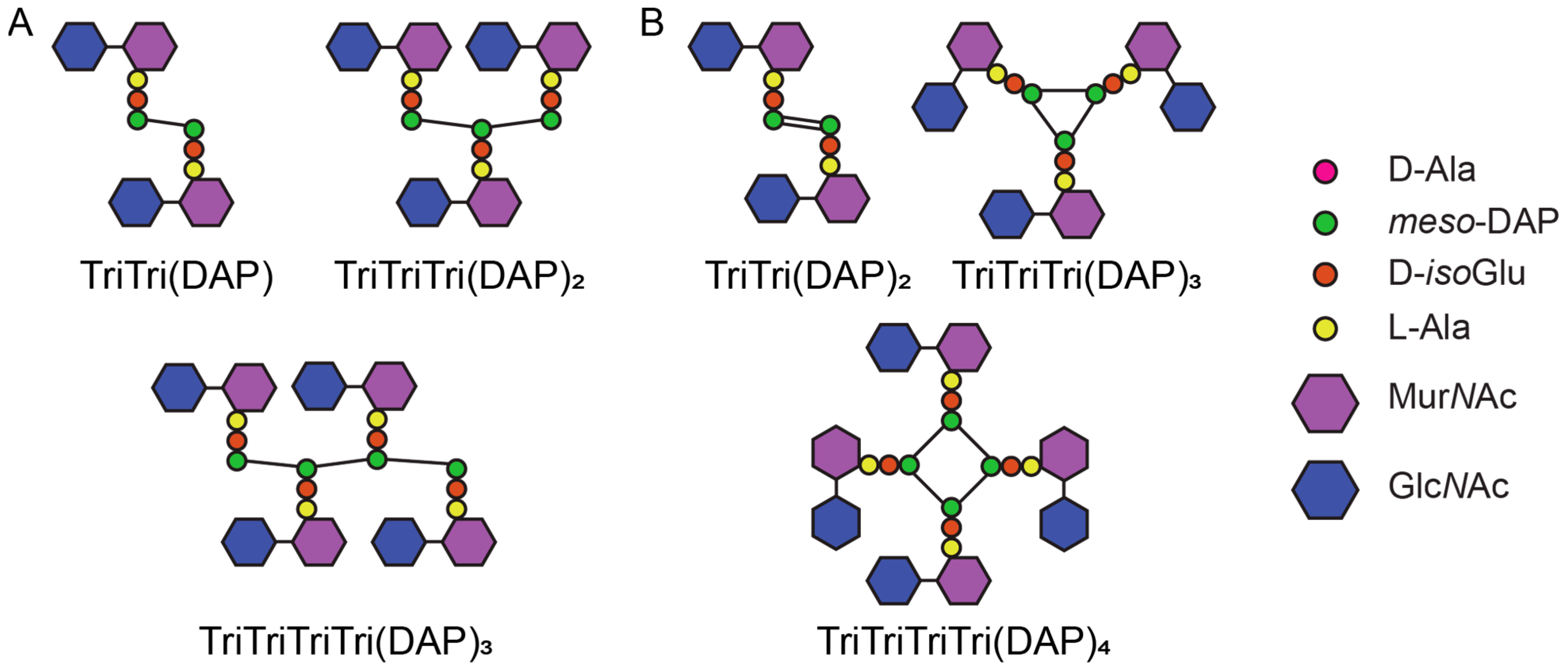 - Vollmer, W.; Blanot, D.; de Pedro, M.A. Peptidoglycan structure and architecture. FEMS Microbiol. Rev. 2008, 32, 149–167. [Google Scholar] [CrossRef] [PubMed]