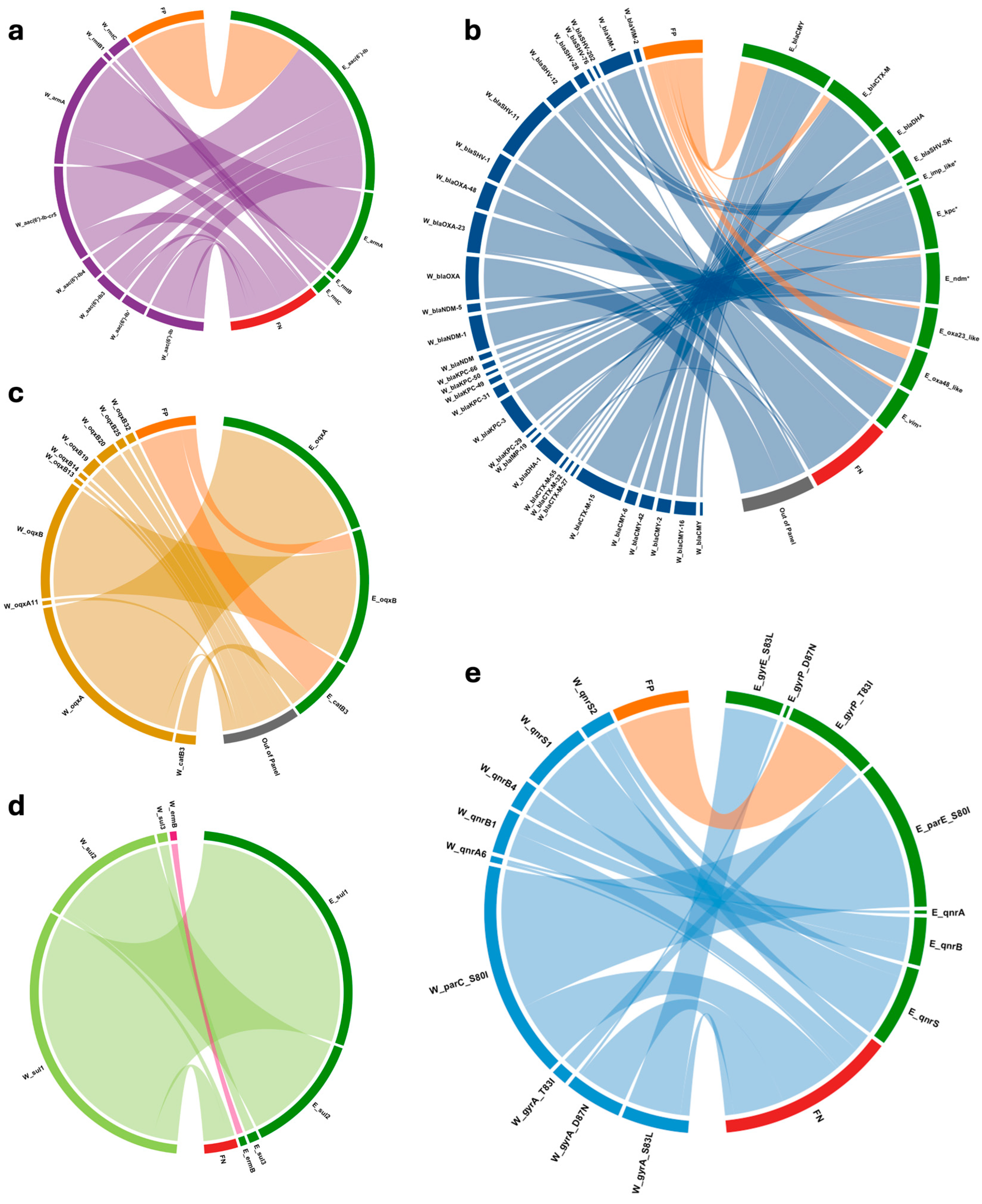 - Rodríguez-Villodres, Á.; Galiana-Cabrera, A.; Torres Fink, I.; Duran Jiménez, R.; Cisneros, J.M.; Lepe, J.A. Evaluation of the MDR Direct Flow Chip Kit for the detection of multiple antimicrobial resistance determinants. Microb. Drug Resist. 2023, 29, 381–385. [Google Scholar] [CrossRef]