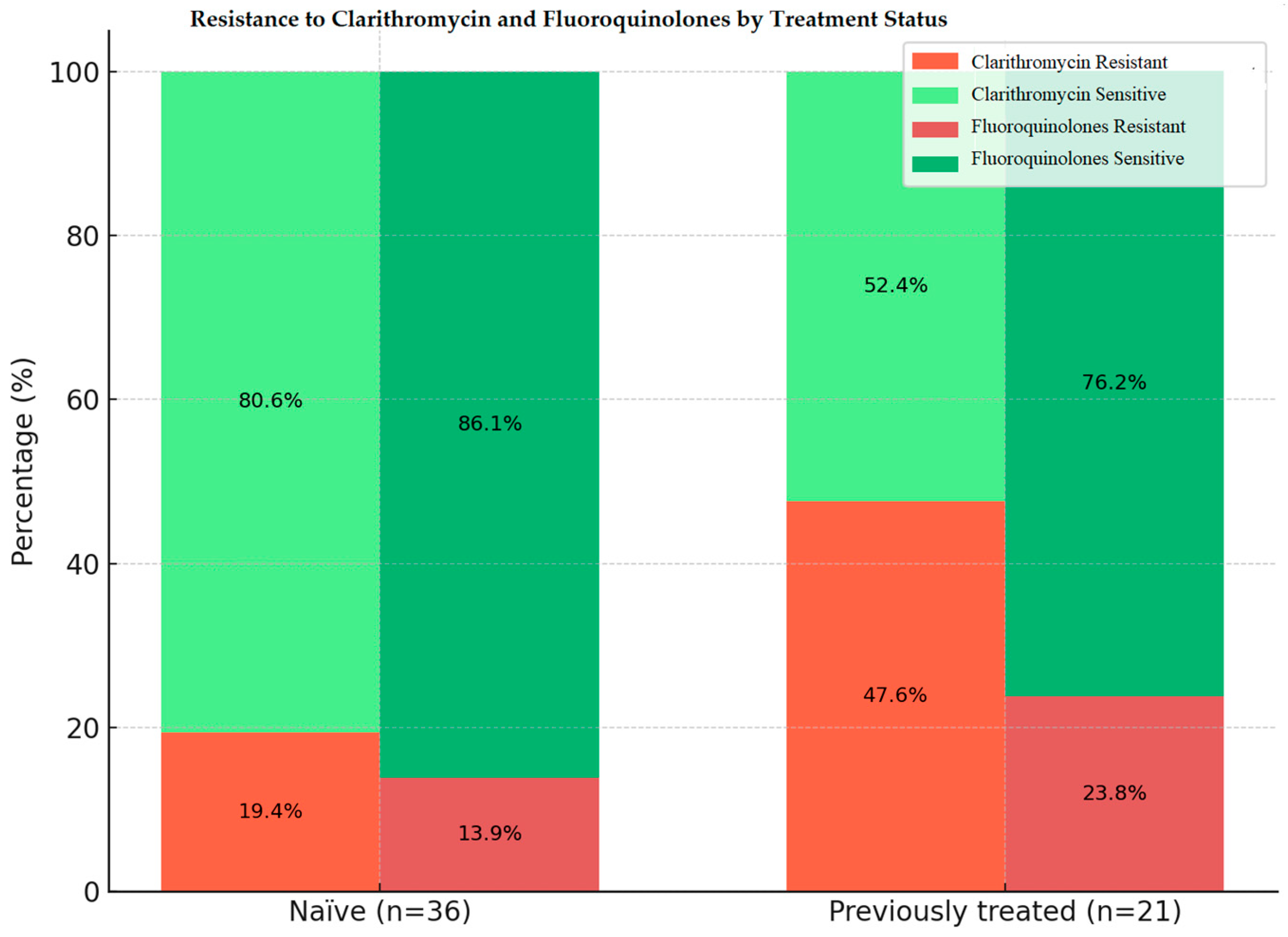 2.4. CLA and FQ Resistance Patterns by Treatment Status
