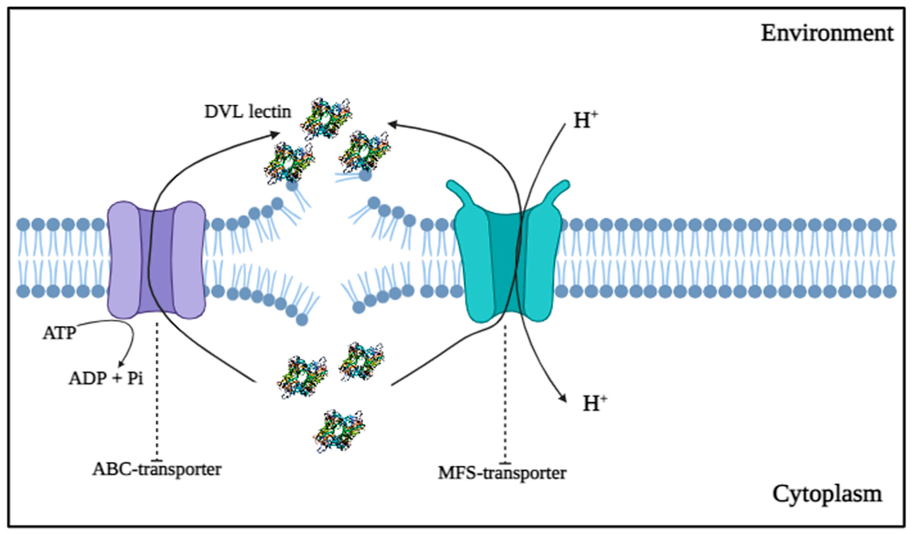 - Silva, R.R.S.; Malveira, E.A.; Aguiar, T.K.B.; Neto, N.A.S.; Roma, R.R.; Santos, M.H.C.; Santos, A.L.E.; Silva, A.F.B.; Freitas, C.D.T.; Rocha, B.A.M.; et al. DVL, Lectin from Dioclea Violacea Seeds, Has Multiples Mechanisms of Action against Candida Spp. via Carbohydrate Recognition Domain. Chem. Biol. Interact. 2023, 382, 110639. [Google Scholar] [CrossRef] [PubMed]
