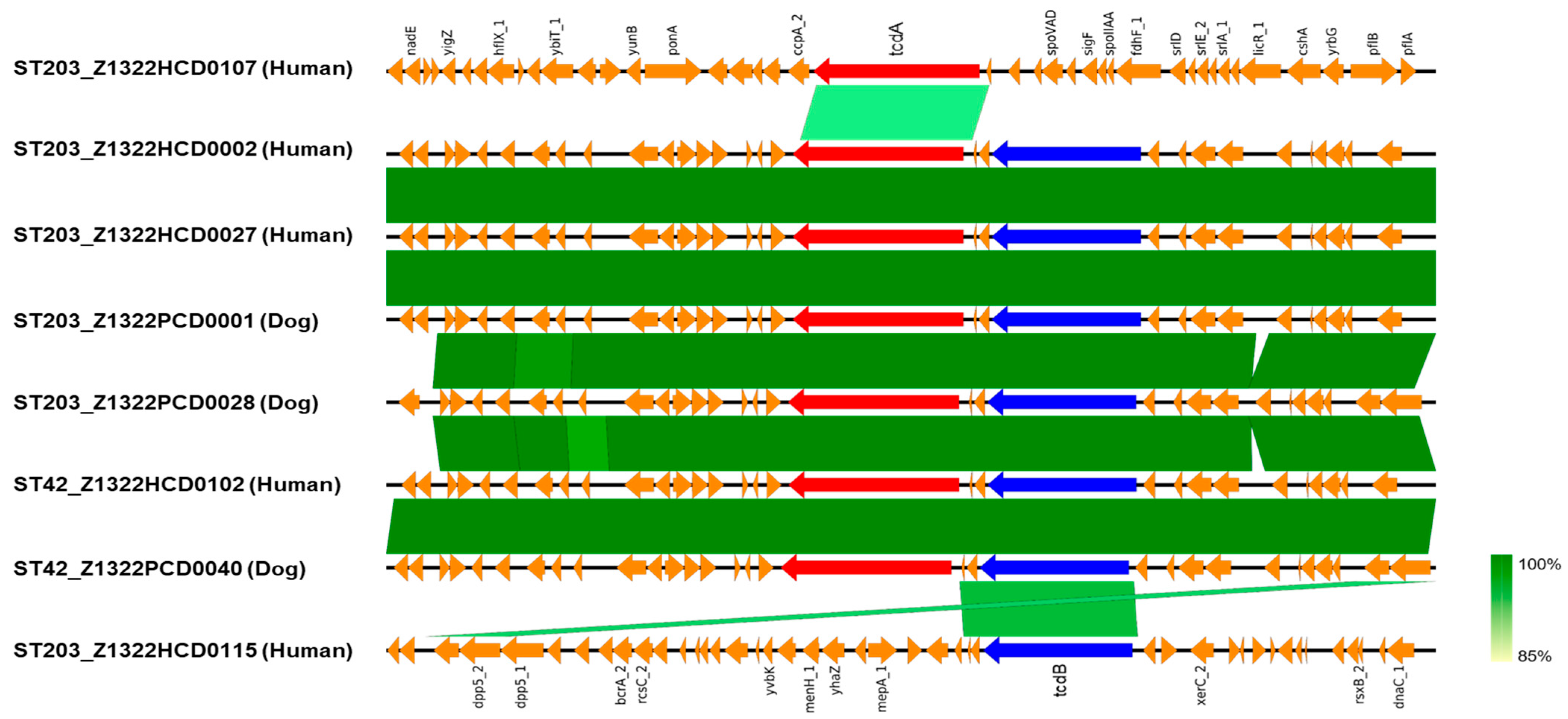 Chicago/Turabian StyleKim, Joo Yeol, Su Min Kwak, Jae Hong Jeong, Jae Young Oh, Kwang-Won Seo, Dongheui An, Dokyun Kim, Seok Hoon Jeong, Chang-Ki Kim, Kwang Jun Lee, and et al. 2025. "Comparative Relatedness of Clostridioides difficile Strains Isolated from Humans and Companion Dogs in South Korea" Antibiotics 14, no. 12: 1231. https://doi.org/10.3390/antibiotics14121231