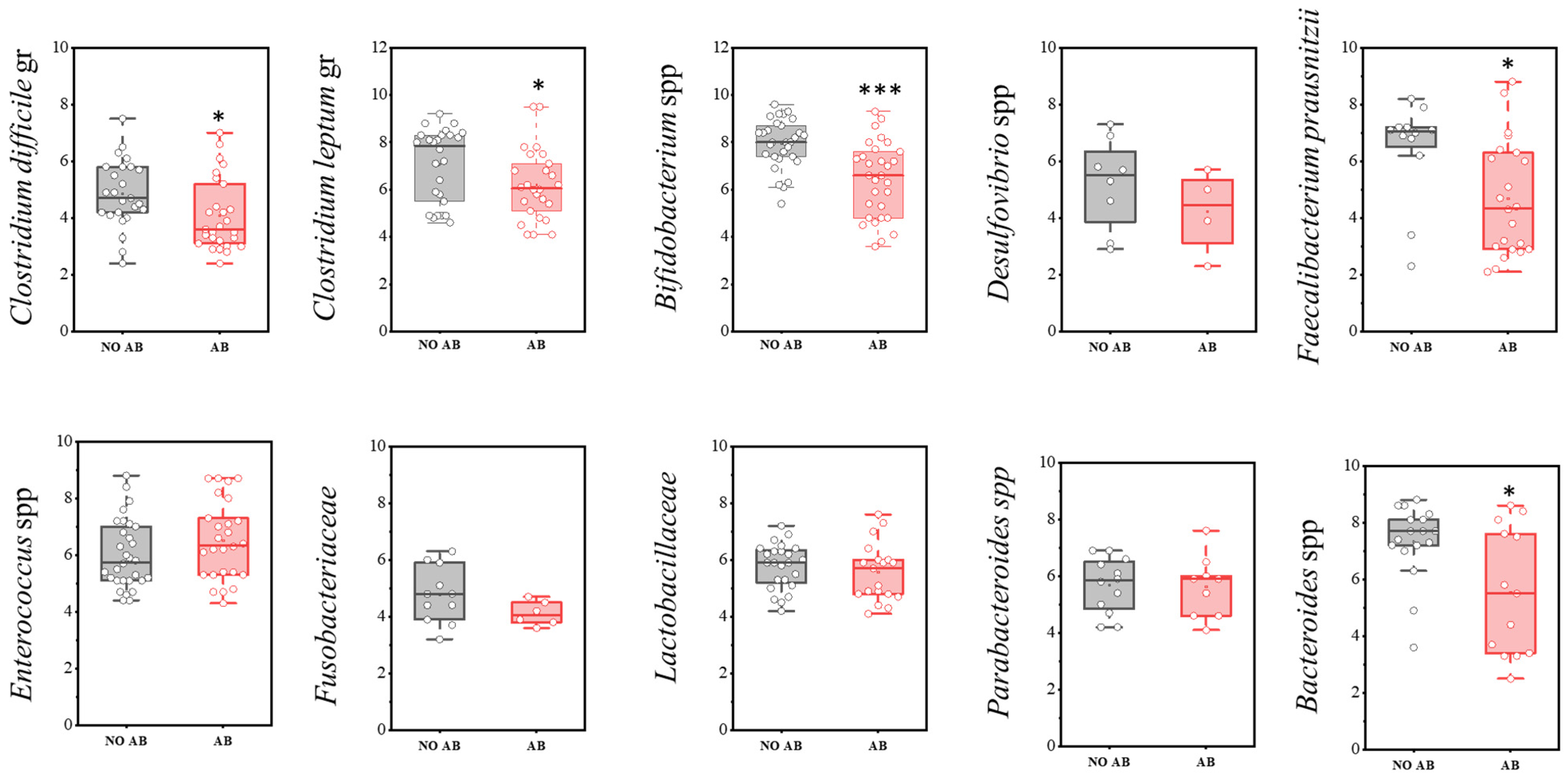 | F. prausnitzii NO AB | 9 | 30 | 13 | 43.3 | p > 0.05 |