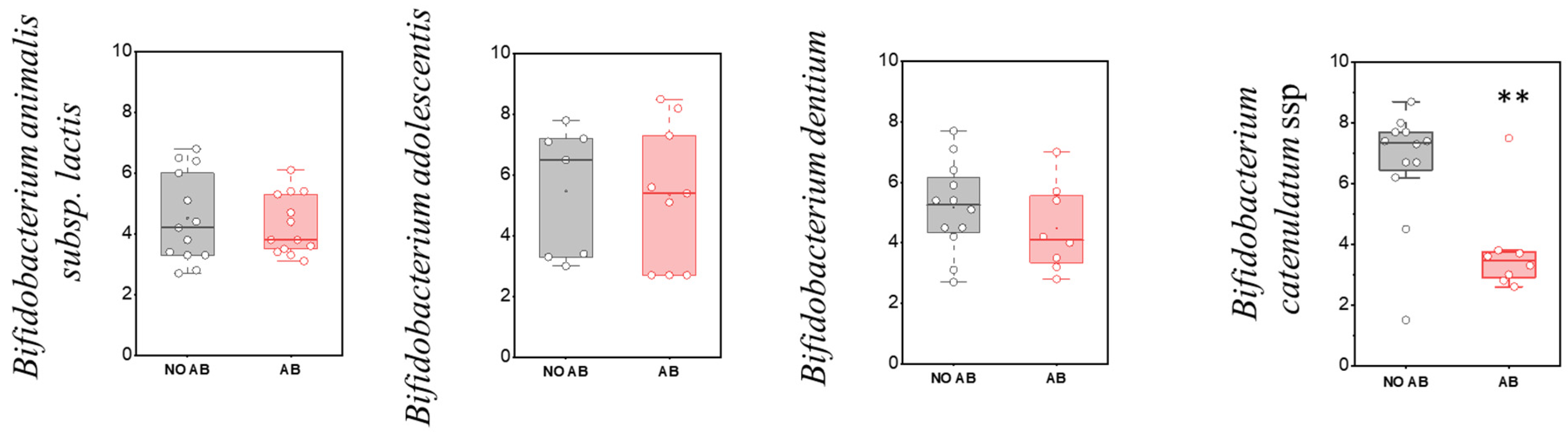 - Mazzola, G.; Murphy, K.; Ross, R.P.; Di Gioia, D.; Biavati, B.; Corvaglia, L.T.; Faldella, G.; Stanton, C. Early Gut Microbiota Perturbations Following Intrapartum Antibiotic Prophylaxis to Prevent Group B Streptococcal Disease. PLoS ONE 2016, 11, e0157527. [Google Scholar] [CrossRef]