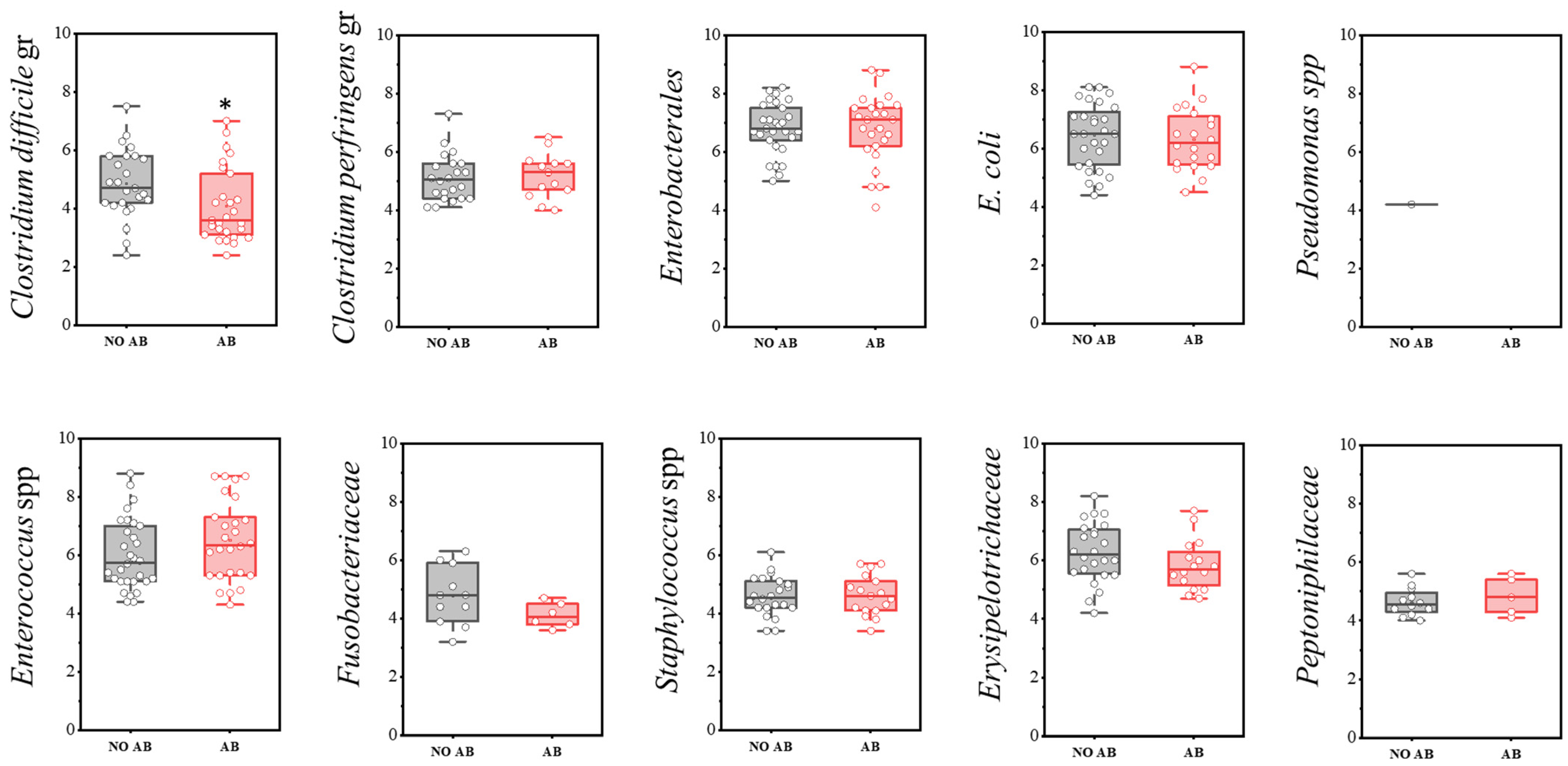 | ABT | −1.5782 | 0.6544 | 0.0191 | −2.8885 | −0.2679 | Clostridium perfringens gr |