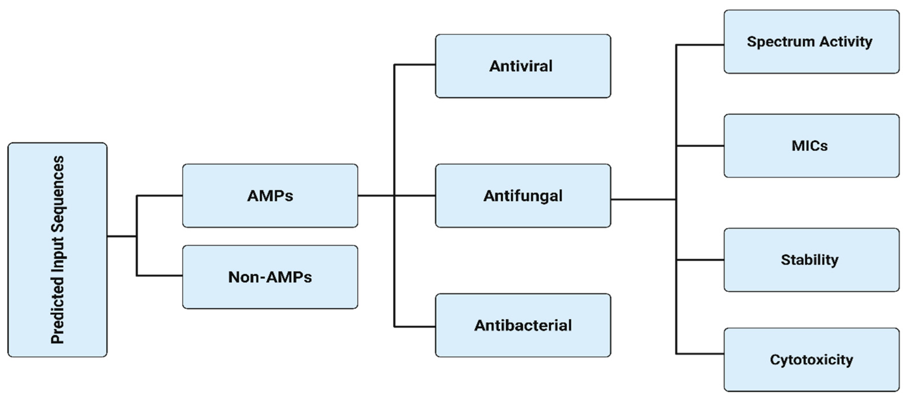 | Generative Models | De novo AMP designs. | Optimize novel AMPs beyond natural diversity. | Needs robust functional scoring. |