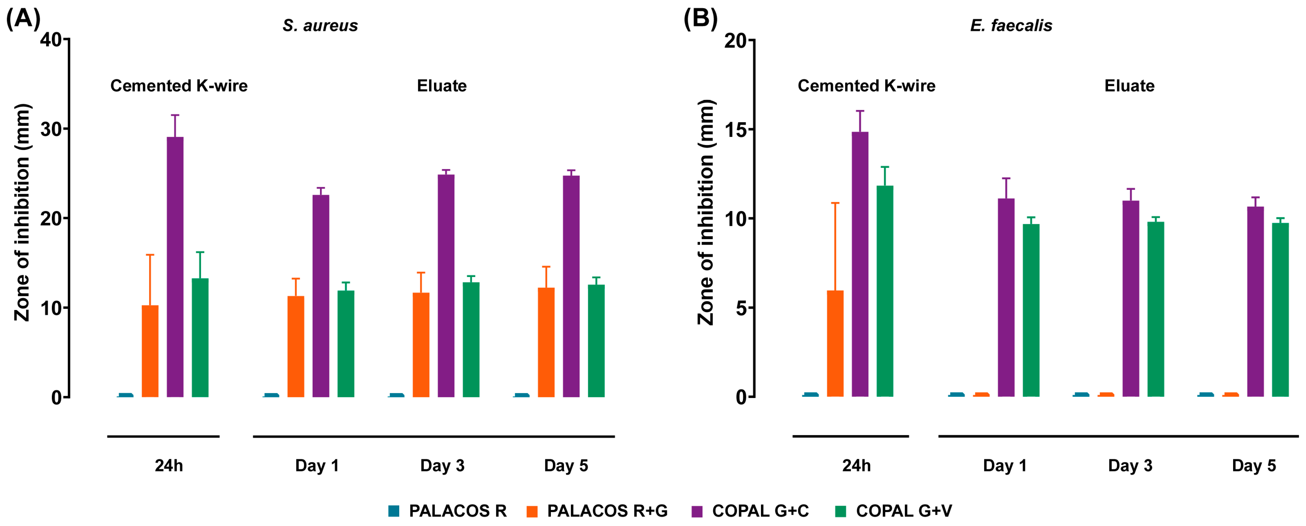 2.2.1. Antibiotic-Loaded Cemented K-Wires Inhibit S. aureus and E. faecalis Despite Resistance