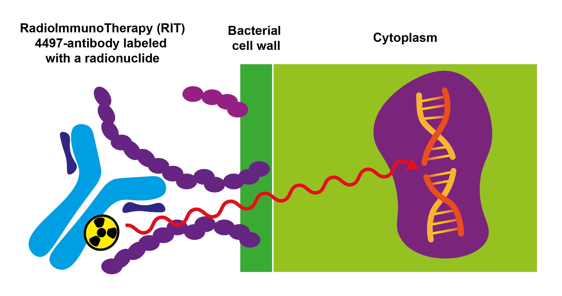 Single- and double DNA strand breakage, as well as the formation of ROS within the bacteria, are both key mechanisms underlying the application of radioimmunotherapy for infections [
