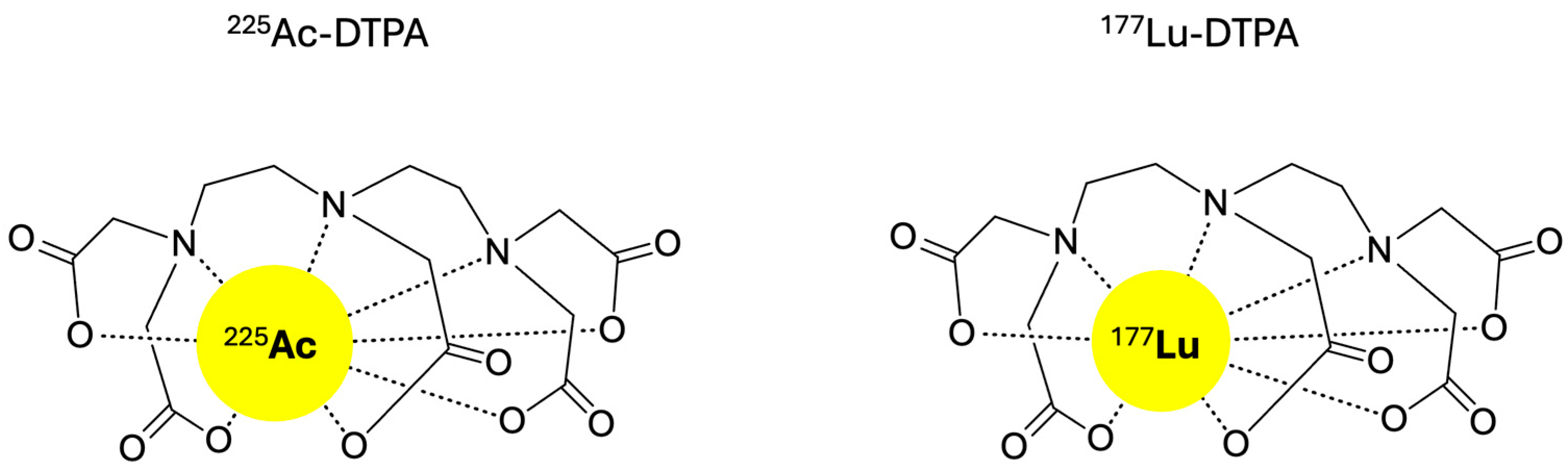 Evaluation of non-targeted radiation effects was performed with the unbound radionuclide treatment groups. Diethylenetriaminepentaacetic acid (DTPA) was used as a chelator for the unbound Actinium-225 and Lutetium-177 radionuclides [