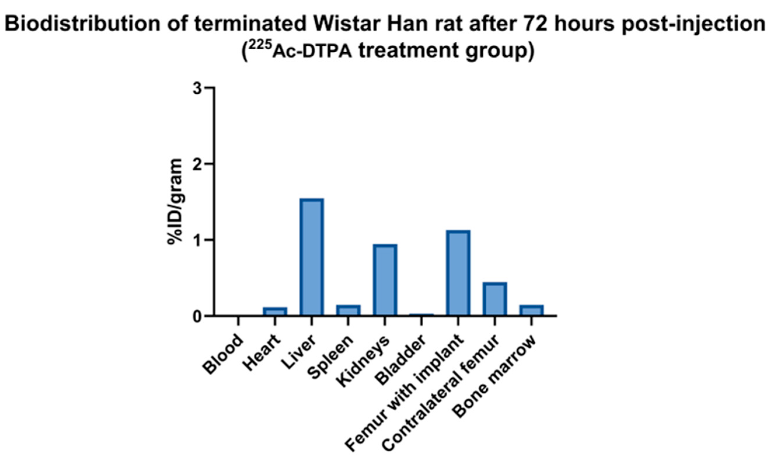 225Ac-DTPA complex itself may have organ-specific affinity. Davis et al. (1999) reported that Actinium-225 bound to a CHX-DTPA complex preferentially accumulates in the liver and bone compared to other organs five days post-injection [
