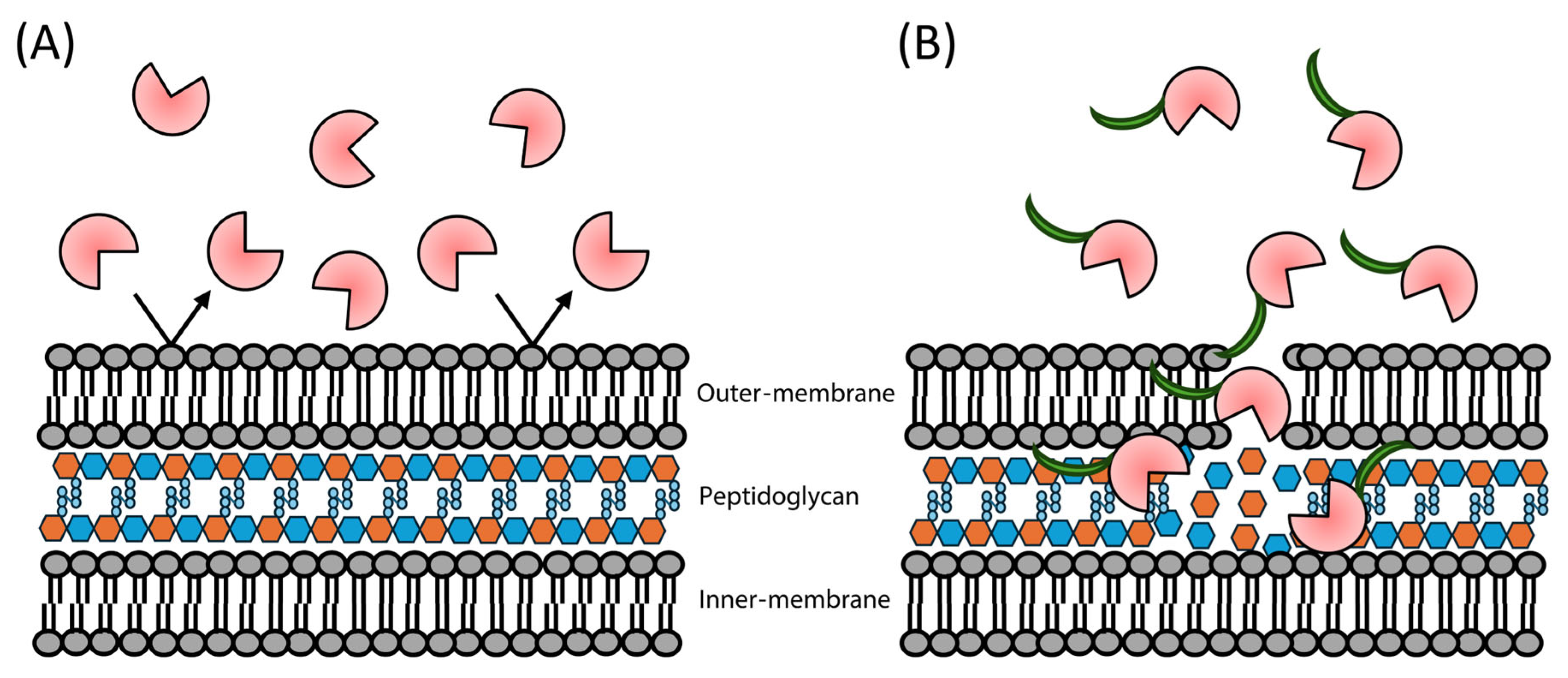 - Oliveira, H.; Vilas Boas, D.; Mesnage, S.; Kluskens, L.D.; Lavigne, R.; Sillankorva, S.; Secundo, F.; Azeredo, J. Structural and Enzymatic Characterization of ABgp46, a Novel Phage Endolysin with Broad Anti-Gram-Negative Bacterial Activity. Front. Microbiol. 2016, 7, 208. [Google Scholar] [CrossRef]