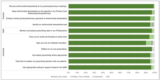 - Borek, A.J.; Wanat, M.; Atkins, L.; Sallis, A.; Ashiru-Oredope, D.; Beech, E.; Butler, C.C.; Chadborn, T.; Hopkins, S.; Jones, L.; et al. Optimising antimicrobial stewardship interventions in English primary care: A behavioural analysis of qualitative and intervention studies. BMJ Open 2020, 10, e039284. [Google Scholar] [CrossRef]