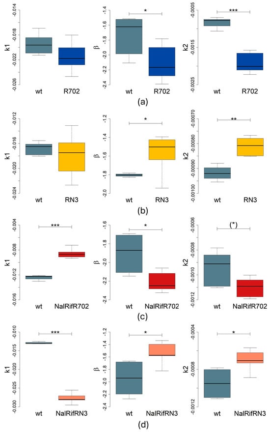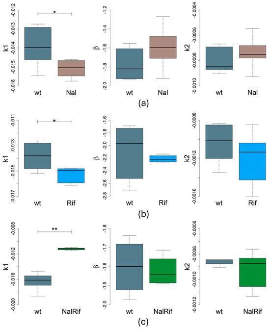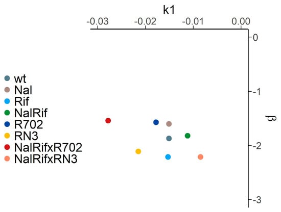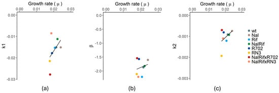 | Strain | k1 (min−1) | p 1 | k2 (min−1) | p 1 | r2 | β | p 1 | r2 |