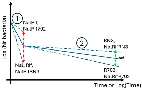 - Rebelo, J.S.; Domingues, C.P.F.; Monteiro, F.; Nogueira, T.; Dionisio, F. Bacterial Persistence Is Essential for Susceptible Cell Survival in Indirect Resistance, Mainly for Lower Cell Densities. PLoS ONE 2021, 16, e0246500. [Google Scholar] [CrossRef] [PubMed]