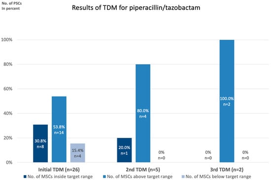 - Nikolas, S.; Thorsten, R.; Max, K.; Patrick, M.; Markus, K.; Güzin, S.; Oliver, S.-C.; Alexander, S.; Andreas, P.; Kerstin, H. Personalized Antibiotic Therapy for the Critically Ill: Implementation Strategies and Effects on Clinical Outcome of Piperacillin Therapeutic Drug Monitoring-A Descriptive Retrospective Analysis. Antibiotics 2021, 10, 1452. [Google Scholar] [CrossRef] [PubMed]