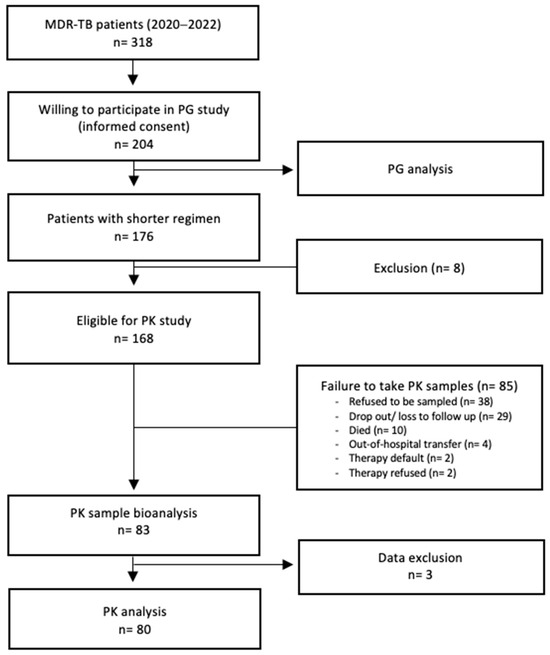 - Weiner, M.; Gelfond, J.; Johnson-Pais, T.L.; Engle, M.; Peloquin, C.A.; Johnson, J.L.; Sizemore, E.E.; Mac Kenzie, W.R. Elevated plasma moxifloxacin concentrations and SLCO1B1 g.11187G>A polymorphism in adults with pulmonary tuberculosis. Antimicrob. Agents Chemother. 2018, 62, 1–11. [Google Scholar] [CrossRef] [PubMed]