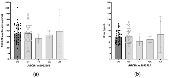 - Naidoo, A.; Ramsuran, V.; Chirehwa, M.; Denti, P.; McIlleron, H.; Naidoo, K.; Yende-Zuma, N.; Singh, R.; Ngcapu, S.; Chaudhry, M.; et al. Effect of genetic variation in UGT1A and ABCB1 on moxifloxacin pharmacokinetics in South African patients with tuberculosis. Pharmacogenomics 2017, 19, 17–29. [Google Scholar] [CrossRef]