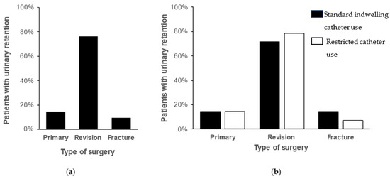 - Hollman, F.; Wolterbeek, N.; Veen, R. Risk Factors for Postoperative Urinary Retention in Men Undergoing Total Hip Arthroplasty. Orthopedics 2015, 38, e507–e511. [Google Scholar] [CrossRef]