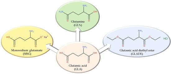 - Moldovan, O.-L.; Rusu, A.; Tanase, C.; Vari, C.-E. Glutamate—A Multifaceted Molecule: Endogenous Neurotransmitter, Controversial Food Additive, Design Compound for Anti-Cancer Drugs. A Critical Appraisal. Food Chem. Toxicol. 2021, 153, 112290. [Google Scholar] [CrossRef] [PubMed]