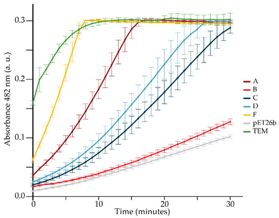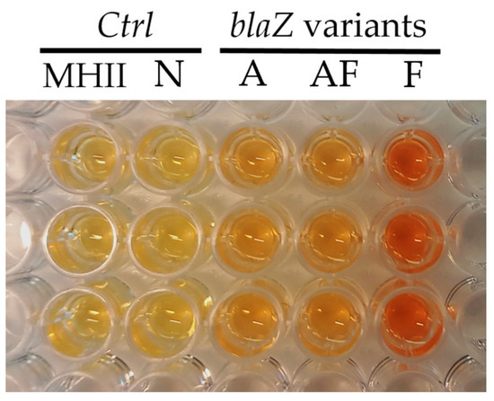 - O’Callaghan, C.H.; Morris, A.; Kirby, S.M.; Shingler, A.H. Novel method for detection of beta-lactamases by using a chromogenic cephalosporin substrate. Antimicrob. Agents Chemother. 1972, 1, 283–288. [Google Scholar] [CrossRef] [PubMed]