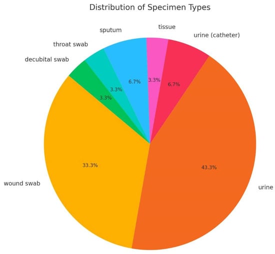 Distribution of isolates according to the specimen type.