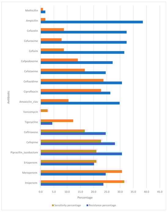 Ertapenem: This carbapenem showed a slightly lower resistance rate (20.2%), with a sensitivity of 21.1%.