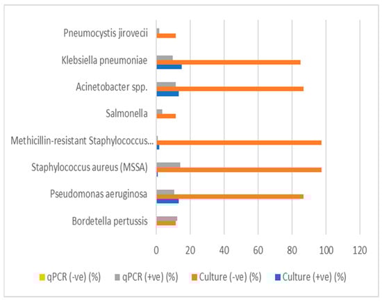 Comparison between culture and qPCR detection of respiratory pathogens.