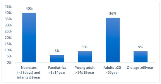 In this study, a high number of CRE cases were recorded in neonatal wards. The high prevalence of CRE in neonate wards is concerning due to the vulnerability of this patient population. Neonates in neonatal high care units or neonatal intensive care units (NICUs) are at higher risk for CRE infections due to several key factors. They have underdeveloped immune systems, making them more susceptible to infections. They require long hospital stays in NICUs, where they are exposed to hospital-acquired pathogens. Furthermore, neonates are extremely vulnerable to CRE infections since they are frequently exposed to antibiotics and invasive procedures [17]. The prevalence of Klebsiella infections (isolates) and non-Klebsiella infections was analyzed in different age groups. The p values for each group were above 0.05; there was no statistical difference between the age groups.