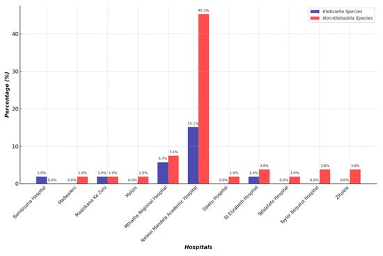 Prevalence of Klebsiella and non-Klebsiella isolates in all 11 hospitals included in this study.