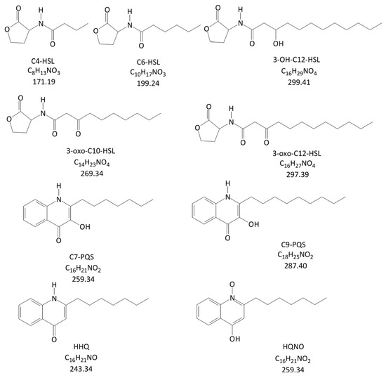 - Montagut, E.J.; Marco, M.P. Biological and clinical significance of quorum sensing alkylquinolones: Current analytical and bioanalytical methods for their quantification. Anal. Bioanal. Chem. 2021, 413, 4599–4618. [Google Scholar] [CrossRef]
