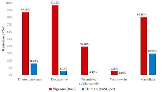 Comparison of resistance values between Staphylococcus aureus isolates from pigeons and human resistance data.