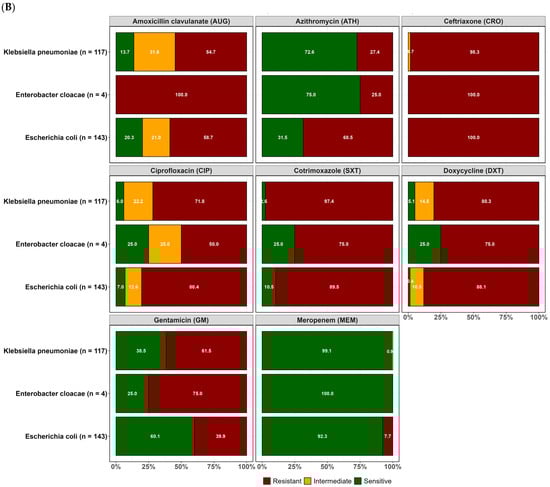 The following supporting information can be downloaded at: https://www.mdpi.com/article/10.3390/antibiotics14060562/s1, Table S1: Antibiotic susceptibility results of E. coli isolates per sampling area; Table S2: Antibiotic susceptibility results of K. pneumoniae isolates per sampling area; Table S3: Antibiotic susceptibility results of E. cloacae isolates per sampling area.