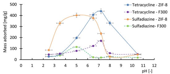 Evaluation of the Potential of Metal–Organic Compounds ZIF-8 and F300 in a Membrane Filtration–Adsorption Process for the Removal of Antibiotics from Water