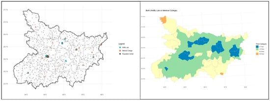 Spatial distribution of AMR diagnostic facilities and access times in Bihar.