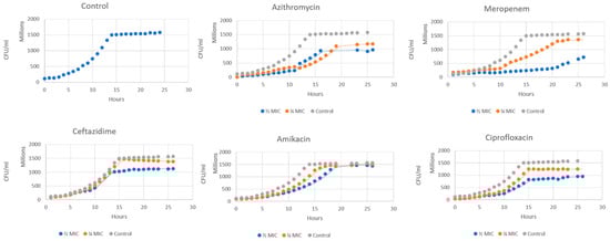 - Aleanizy, F.S.; Alqahtani, F.Y.; Eltayb, E.K.; Alrumikan, N.; Almebki, R.; Alhossan, A.; Almangour, T.A.; AlQahtani, H. Evaluating the effect of antibiotics sub-inhibitory dose on Pseudomonas aeruginosa quorum sensing dependent virulence and its phenotypes. Saudi J. Biol. Sci. 2021, 28, 550–559. [Google Scholar] [CrossRef] [PubMed]