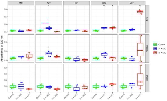 APA StyleAmer, A. N., Attia, N., Baecker, D., Mansour, R. E., & El-Soudany, I. (2025). Growth-Phase-Dependent Modulation of Quorum Sensing and Virulence Factors in Pseudomonas aeruginosa ATCC 27853 by Sub-MICs of Antibiotics. Antibiotics, 14(7), 731. https://doi.org/10.3390/antibiotics14070731