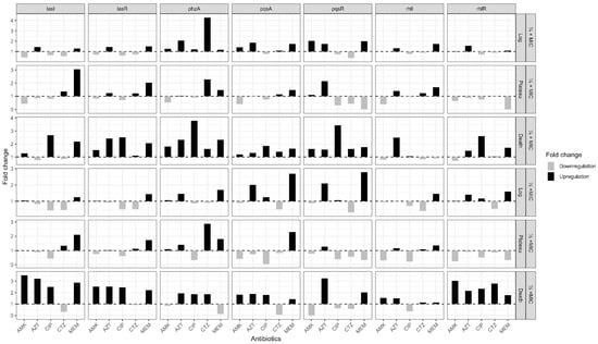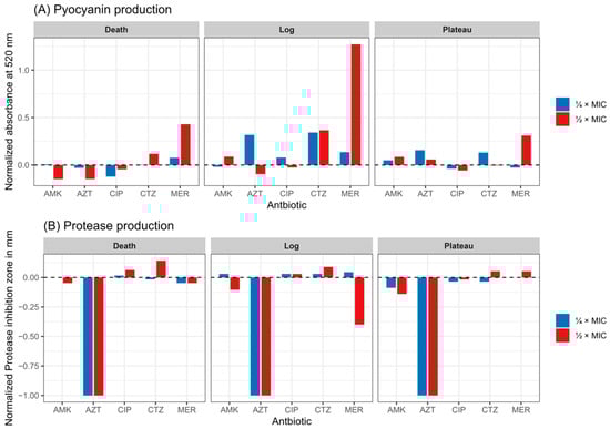 Chicago/Turabian StyleAmer, Ahmed Noby, Nancy Attia, Daniel Baecker, Rasha Emad Mansour, and Ingy El-Soudany. 2025. "Growth-Phase-Dependent Modulation of Quorum Sensing and Virulence Factors in Pseudomonas aeruginosa ATCC 27853 by Sub-MICs of Antibiotics" Antibiotics 14, no. 7: 731. https://doi.org/10.3390/antibiotics14070731