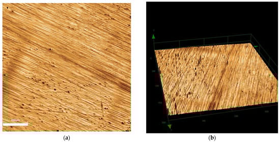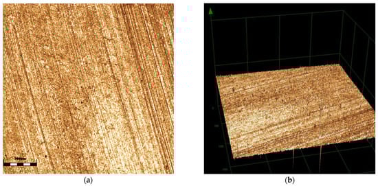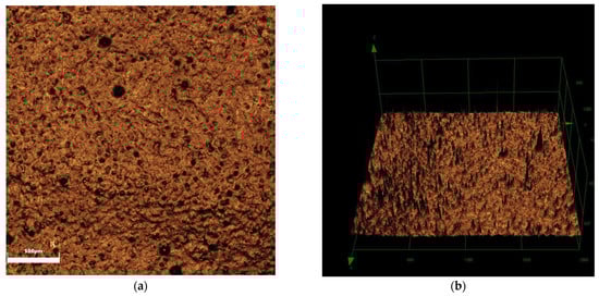 When comparing surface roughness, a significant difference was observed among the groups (p < 0.001), with the glazing group exhibiting greater roughness compared to the polishing (p < 0.006) and control groups (p = 0.016), as shown in Table 1. In terms of wettability, the glazing group exhibited lower values (polishing—p = 0.002; control—p < 0.001). Figure 1, Figure 2 and Figure 3 show the images obtained for surface roughness using confocal laser scanning microscopy.