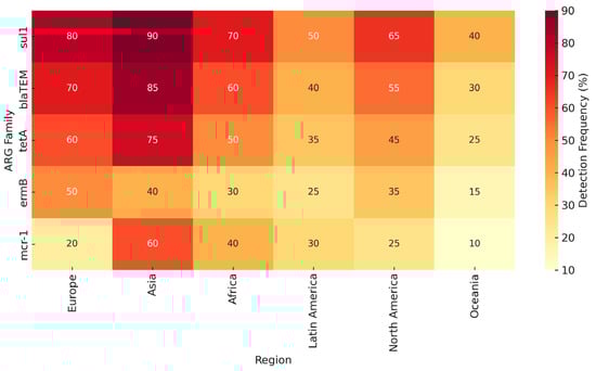 In Asia, aquatic environments are increasingly recognized as significant reservoirs of antibiotic resistance genes (ARGs), driven by human activity and aquaculture. In South Korea, a study conducted in South Jeolla Province and Jeju Island assessed effluents from coastal aquaculture farms. Quantitative PCR (qPCR) analysis detected 22 distinct ARGs, with tetB and tetD being the most prevalent. These resistance genes were strongly associated with bacterial genera such as Vibrio spp. and Marinomonas spp., underscoring the role of aquaculture effluents in facilitating the spread of ARGs in marine ecosystems [92]. Similarly, investigations in Xiamen City, China, revealed widespread ARG contamination in lagoon waters impacted by urban stormwater runoff. Using high-throughput qPCR and metagenomic techniques, researchers identified 285 ARGs, including sul1, tetO, and qnrS, indicating that rapid urbanization and insufficient wastewater management are key contributors to ARG dissemination in Chinese aquatic systems [44]. These findings highlight how both aquaculture and urban development are critical drivers of environmental antibiotic resistance in Asia.
