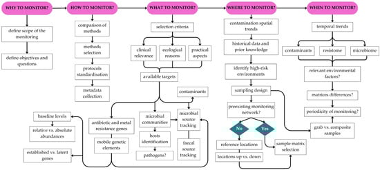 A careful selection of environmental AR monitoring targets becomes particularly important for non-metagenomic methodologies, where targeted approaches are often required. In any case, there is broad consensus that the selection of environmental AR surveillance targets should be guided by the specific purpose of the monitoring campaign or program [71].