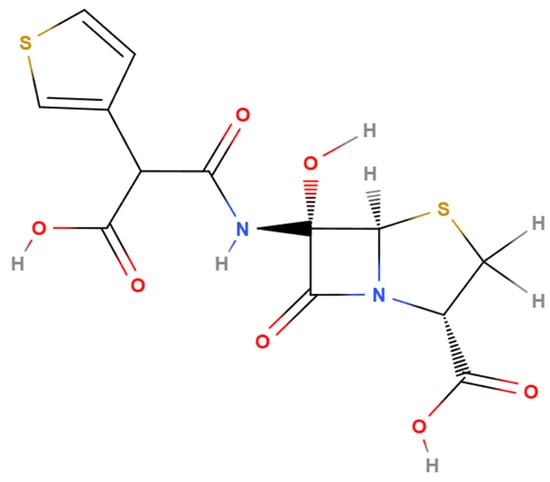 Chemical structure of temocillin (generated with MolView (v2.4), accessed 9 July 2025; available at https://molview.org/).